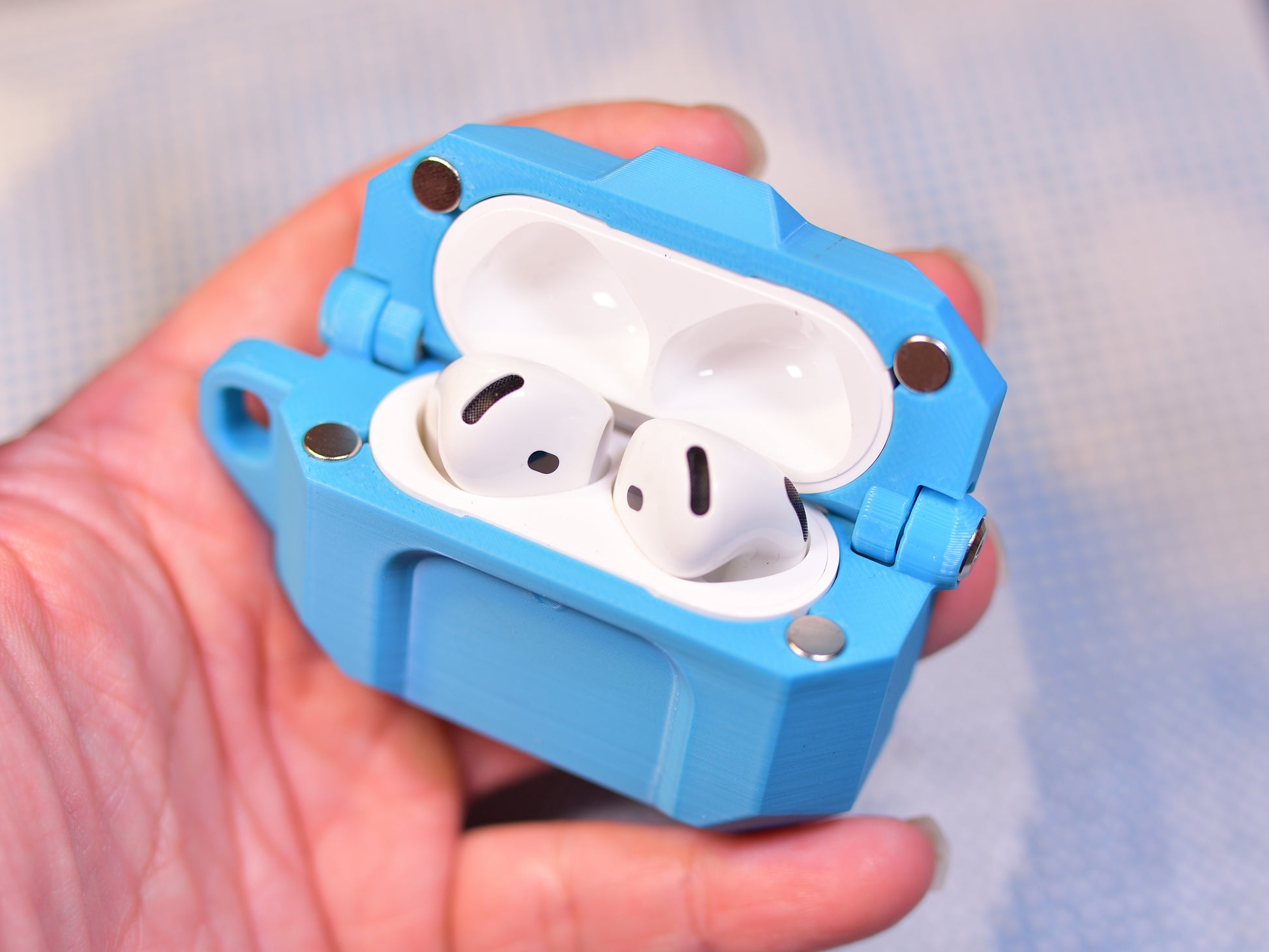 A mechanically hinged AirPods case inspired by industrial design β no glue, no tape, built to last.